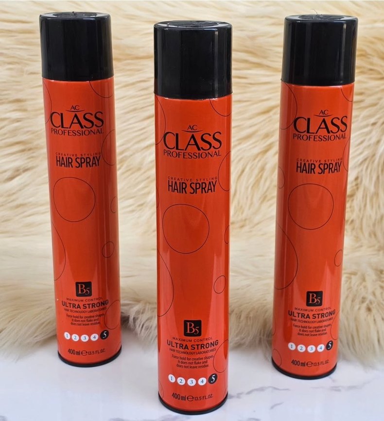 AC Class Profesyonel Ultra Güçlü saç spreyi, B5 kompleksi ile 400 ml kutuda güçlü tutuş sağlar. Gün boyu şekilli saçlar için uygundur. ♀️