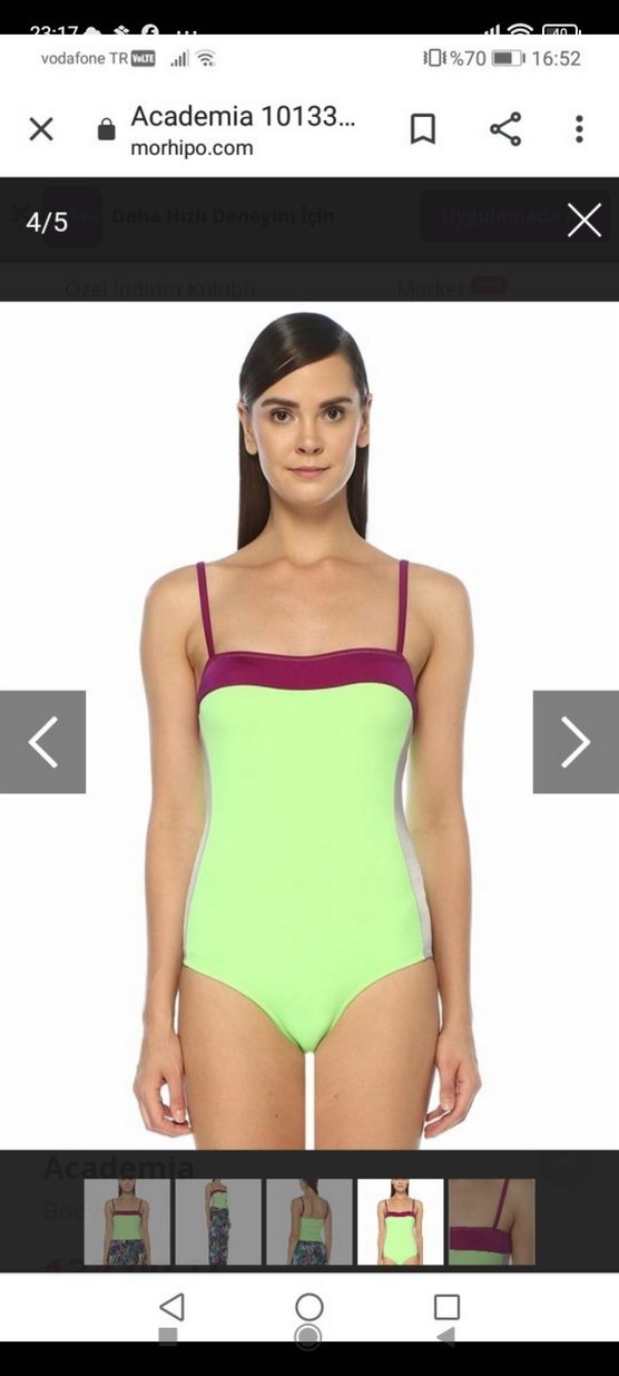 İnce askılı, yeşil ve koyu mor detaylı kadın mayo, kısa ve vücuda oturan kesimiyle modern ve cesur bir tarz sunar. Sıfır ürün hiç kullanılmadı.#Academia#mayo