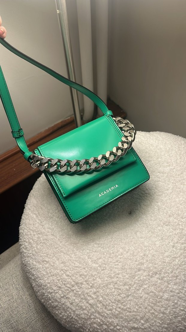Academia Gerçek Deri Zincir Detaylı Yeşil Çanta