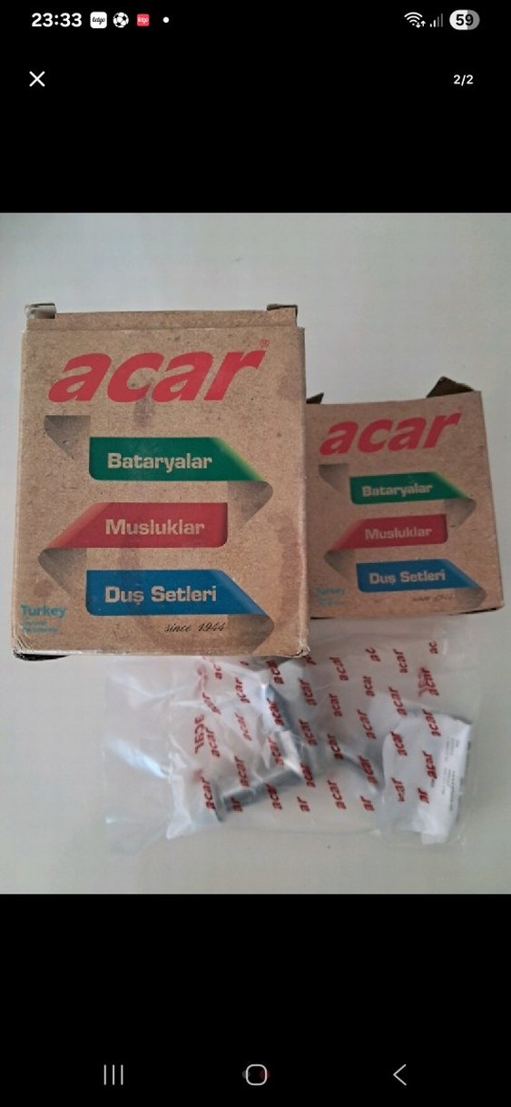 Acar marka bataryalar, musluklar ve duş setleri için parçalar, camel renkli karton kutularda sunulmaktadır. Tesisat ihtiyaçları için uygundur.