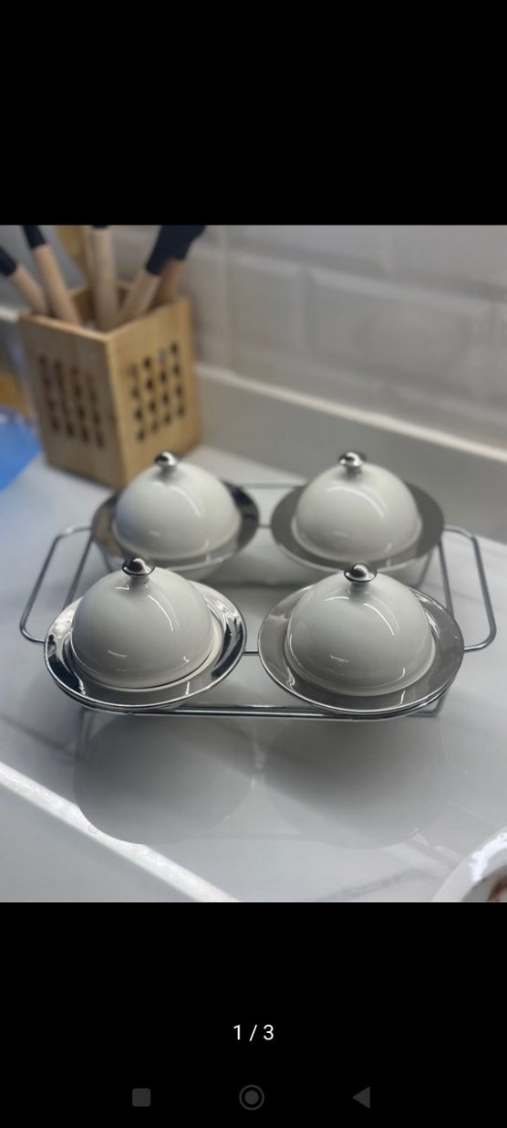 Acar marka Gri Beyaz Kapaklı 4'lü Servis Tabağı