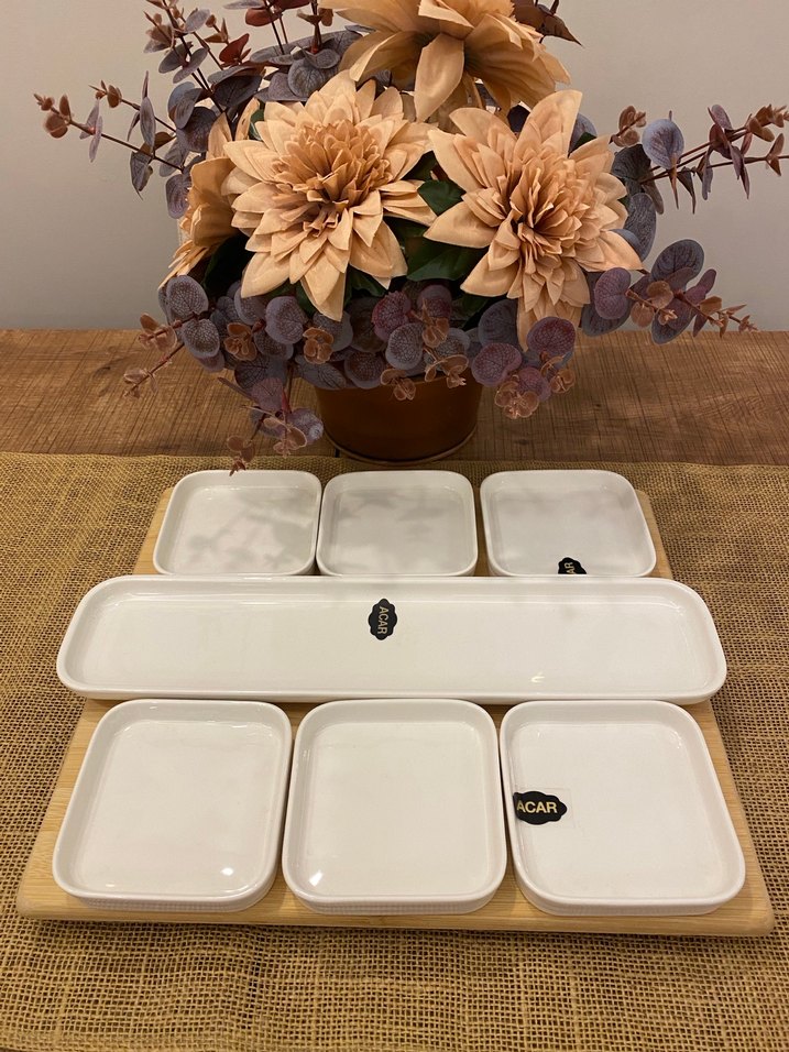 Yeni ve etiketli,alttaki ahşap 360 derece dönerlidir.Acar Home marka beyaz renk çerezlik/kahvaltılık seti. Şık sunumlar için idealdir.