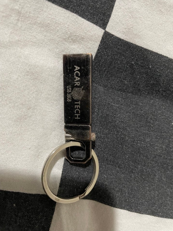 ACAR TECH markalı siyah metal anahtarlık, minimalist tasarımlı ve USB 16GB depolama alanına sahip. Rock punk tarzına uygun şık aksesuar.