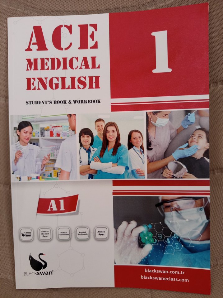ACE Medical English 1, A1 seviyesinde tıbbi İngilizce öğrenimi için öğrenci kitabı ve çalışma kitabıdır. Pratik egzersizler içerir, Blackswan yayınevi tarafından basılmıştır. Hiç kullanılmadı sıfır kitap.