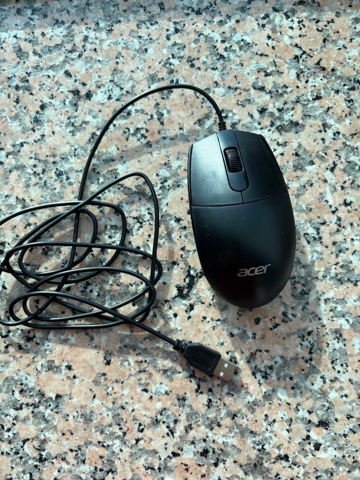 Acer marka siyah renkli, USB kablolu bilgisayar mouse'u, kolay gezinme için kaydırma tekerleği ile. Nerdeyse hiç kullanılmadı