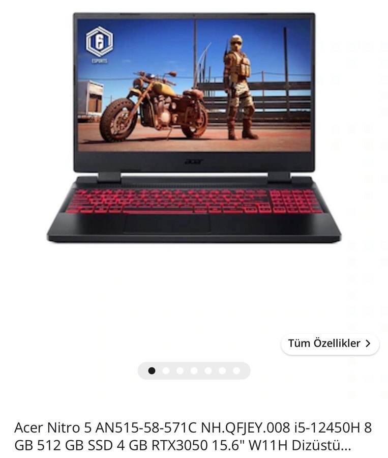 Acer Nitro 5 AN515-58, 15.6 inç ekran, i5-12450 işlemci, 512GB SSD, 4GB RTX3050 grafik kartı ve kırmızı aydınlatmalı klavye ile donatılmıştır.