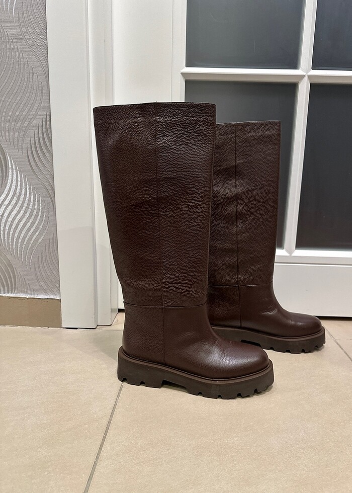 Geçen sezon sonunda pelinin ayakkabılarından aldım. Hiç giymedim, fotoğrafta altından belli giyilmediği. Bu sezon başka bir kahve çizme beğendiğim için satıyorum. Tam kalıp. Baldır ölçüsü 41 cm
