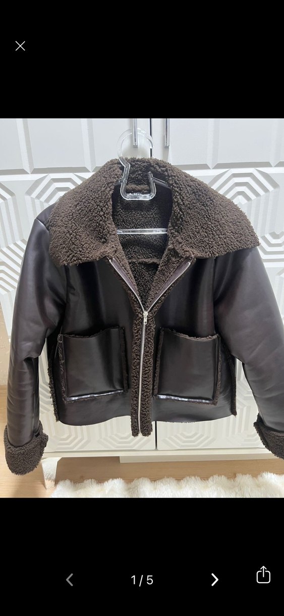 Sadece 1 kez giydim temiz. Kahverengi deri kadın ceket, rahat kürk detaylı ve kesik yakalıdır. Kısa, rahat kesim ve iki ön ceplidir.