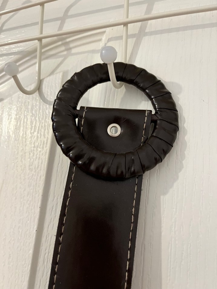 Minimalist ve çağdaş tasarıma sahip acı kahve kadın kemeri, metal tokasıyla şık ve modaya uygun bir görünüm sunar.