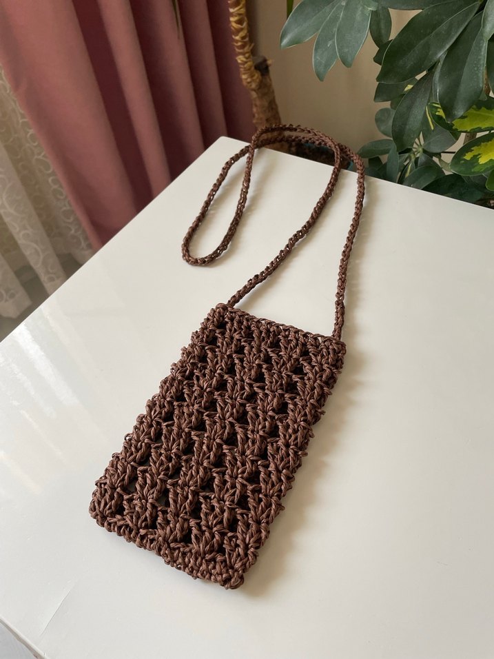 Acı kahve örgü hasır telefon çantası