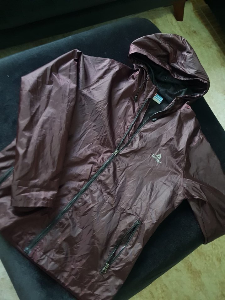 Kahverengi, kapüşonlu yağmurluk, fermuarlı ön cep ve uzun kolludur. Sentetik kumaştan üretilmiş, rahat kesimli ve midi boyda, dış mekan kullanımı için uygundur, hiç giyilmedi. ☔
