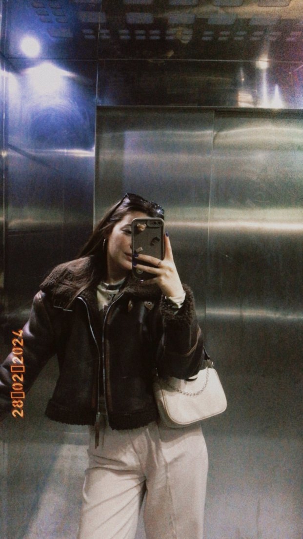 Kahverengi , deri, uzun kollu, yüksek yakalı, normal boy, desensiz, rock punk tarzı kadın ceket