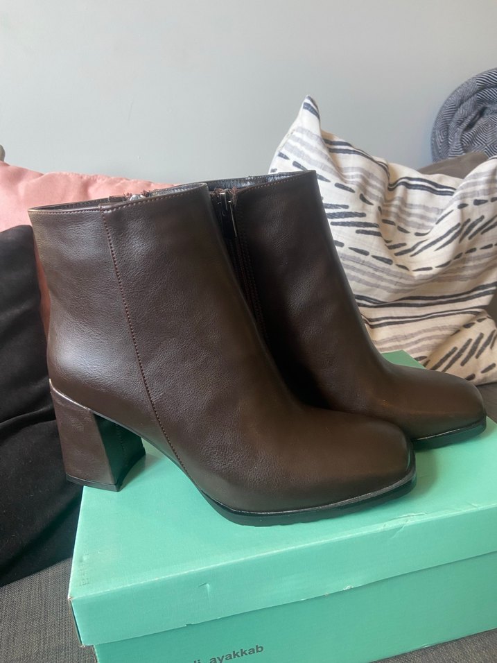küt burunlu bot, hiç giymedim hediye geldi. Topuk kısmında çok hafif bir defosu var.