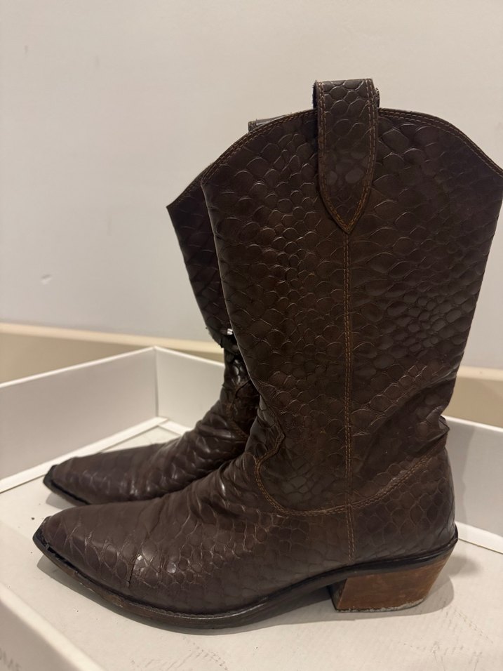 Acı kahve Yılan Derisi Desenli kovboy çizme