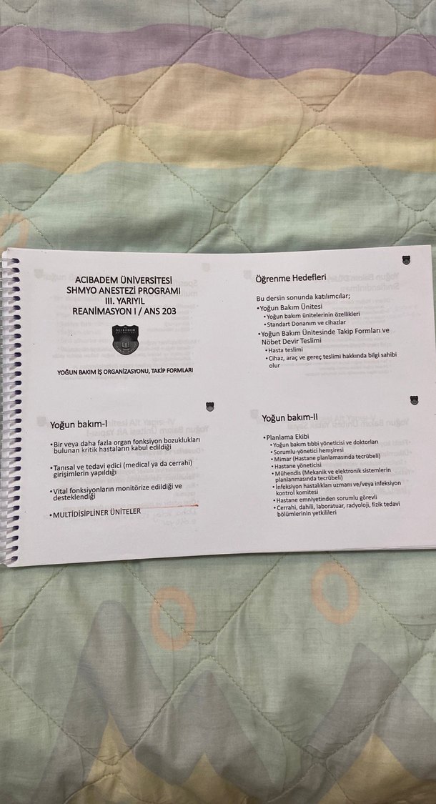 Acıbadem Üniversitesi SHMYO Anestezi programı için yoğun bakım ve reanimasyon konularını içeren ders kitabı.