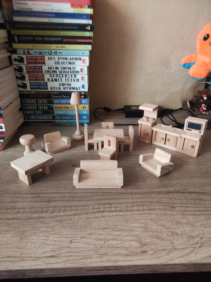 Açık Bej Ahşap Oyuncak Ev Mobilyaları