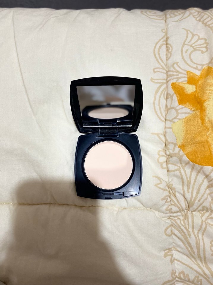 Açık bej renkte, pürüzsüz dokulu ve içinde ayna bulunan kompakt pudra. Makyaj sabitlemek için uygun, doğal bir görünüm sağlar.
