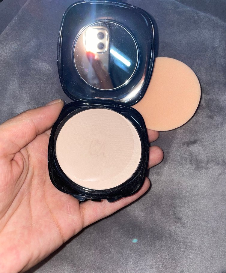 Açık bej renkte kompakt pudra, siyah kutuda ayna ve sünger aplikatör ile birlikte. Yeni paketli orta kapatıcılık