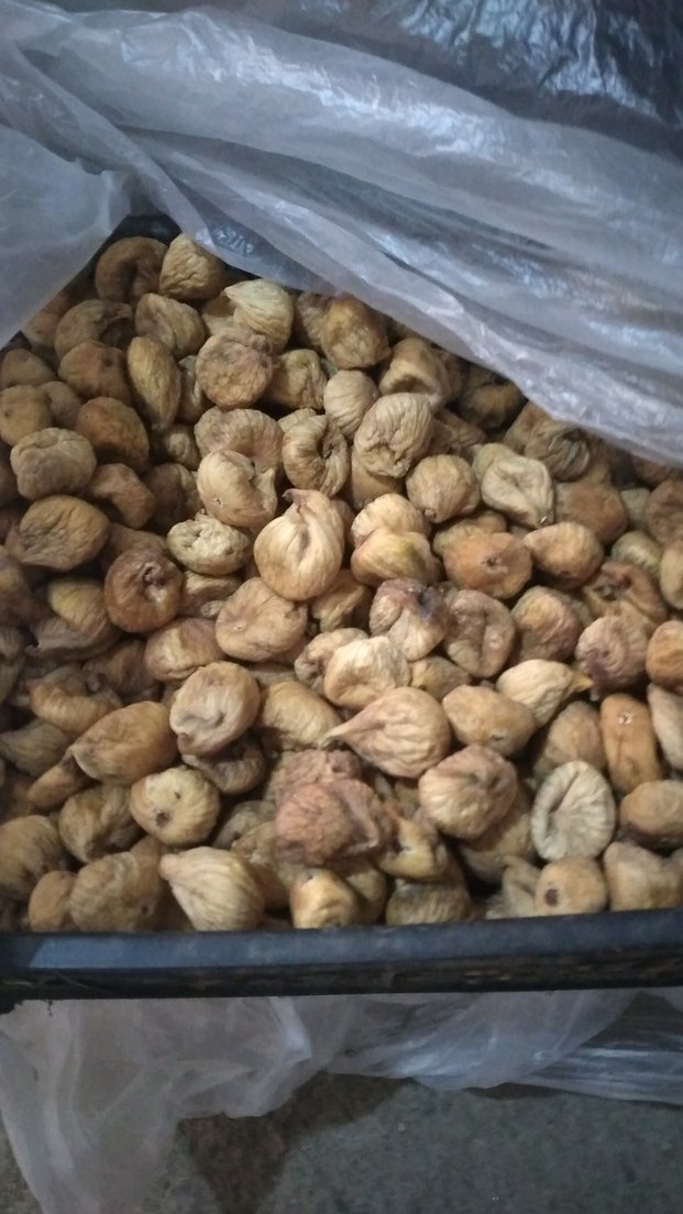 Açık bej renkli kuru incirler, doğal kurutulmuş doku ve renkte, saklama kabında yer alıyor.