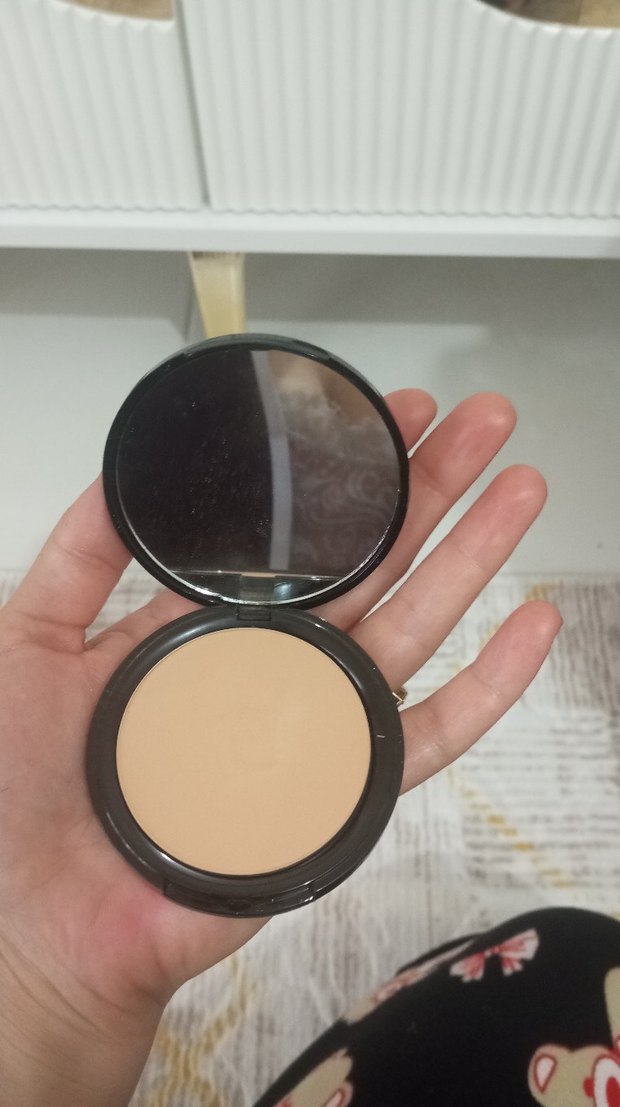Dahili aynasıyla kolay uygulama sağlayan koyu bej renkli kompakt pudra.