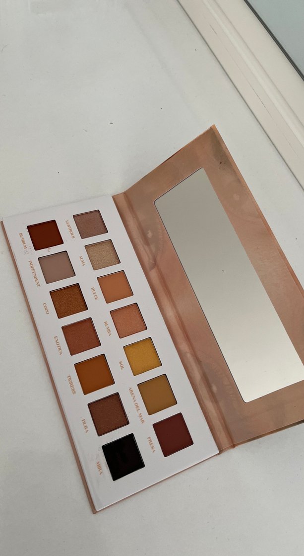 Açık bej ve sıcak tonlarda, dahili aynalı göz farı paletidir.