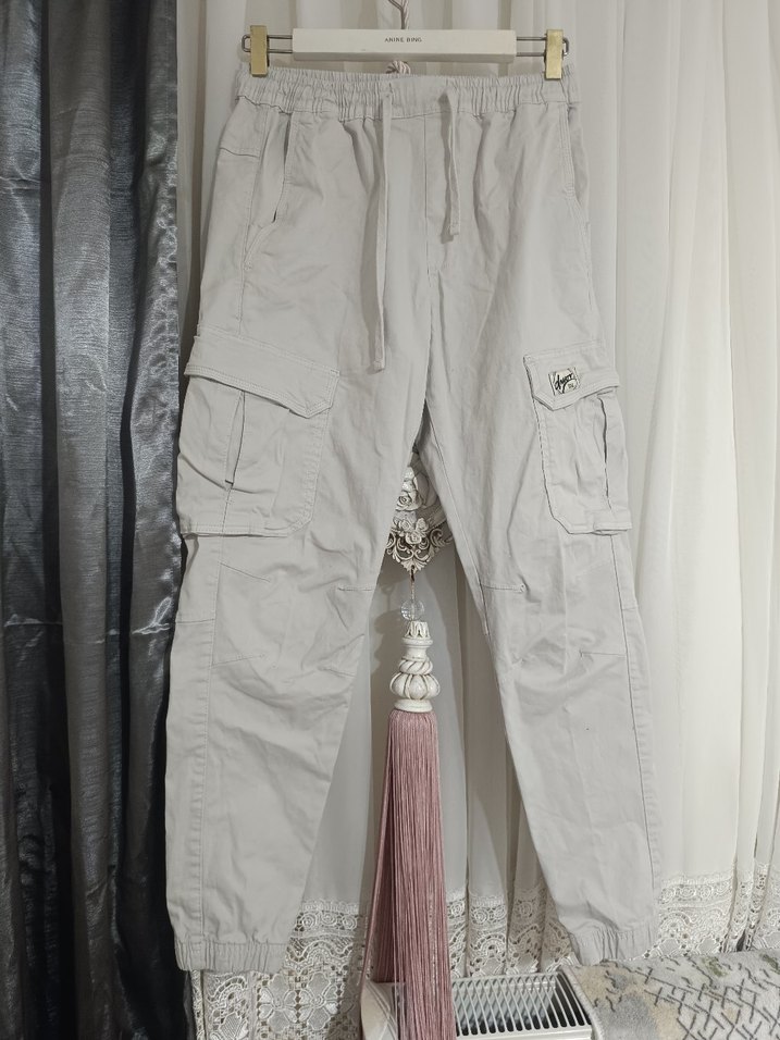 açık gri Kemerli Rahat Kesim erkek Pantolon
