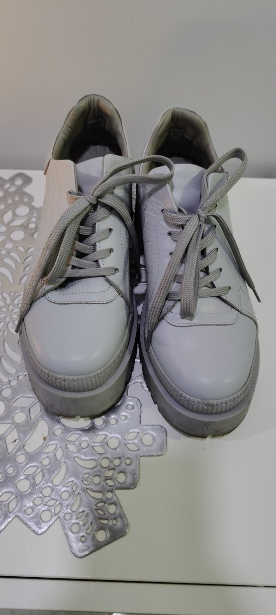 Açık gri Platform Tabanlı deri Kadın gunluk Ayakkabı