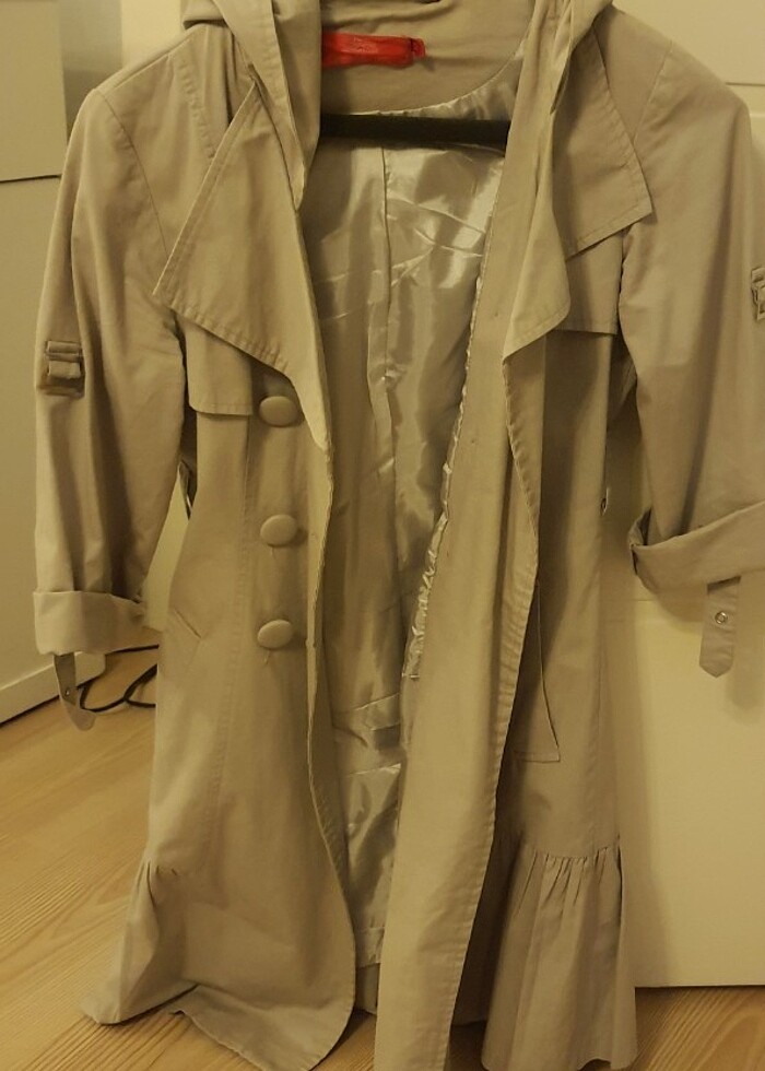 S 36 beden uyumlu defosuz yeni , asla yıpranma yok. Kapşonludur.Kolları ve arka modelini fotolarda gösterdim.Etek kısmı sade firfirlidir.