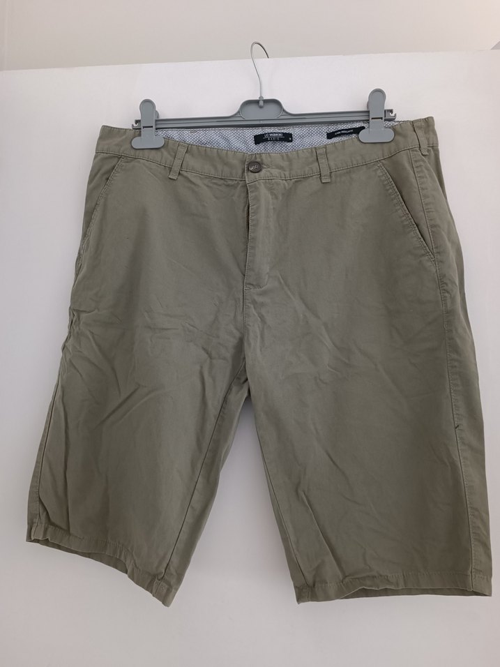 açık haki renkli, keten kumaştan yapılmış, kemerli ve bol kesim erkek şort. Rahat sokak stili ve açık hava kullanımı için uygundur. #erkekşort#erkekgiyim#erkekketenşort defosu yok kullanılabilir durumda
