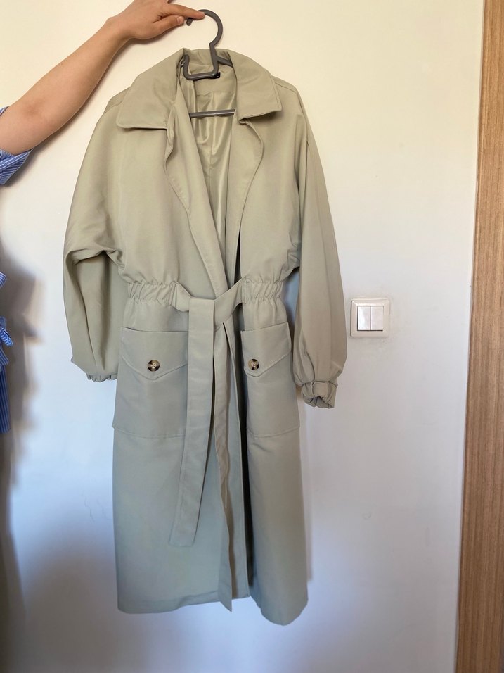 Açık haki oversize belden büzgülü ve kemerli trençkot Hiç giyilmedi Güncel fiyatı 1.500₺