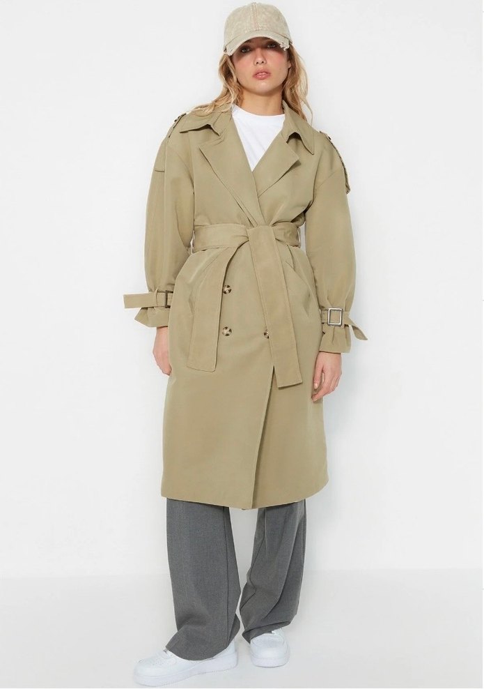 Açık Haki Uzun Kemerli Kadın Trençkot