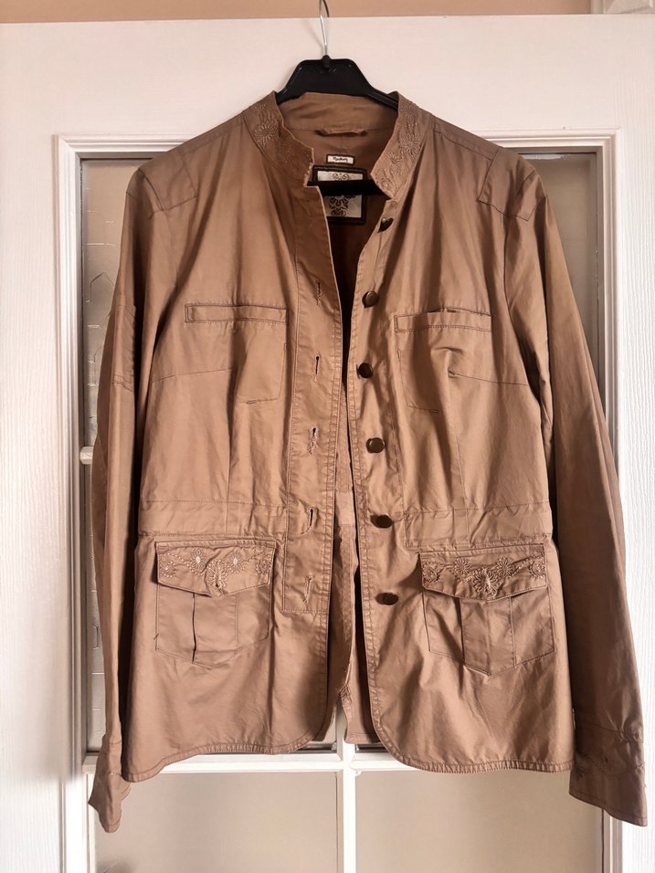 Bej keten kumaştan, düğmeli ve uzun kollu kadın ceket. Normal kesim ve yaka detaylı, günlük kullanıma uygun şık parça. ✨