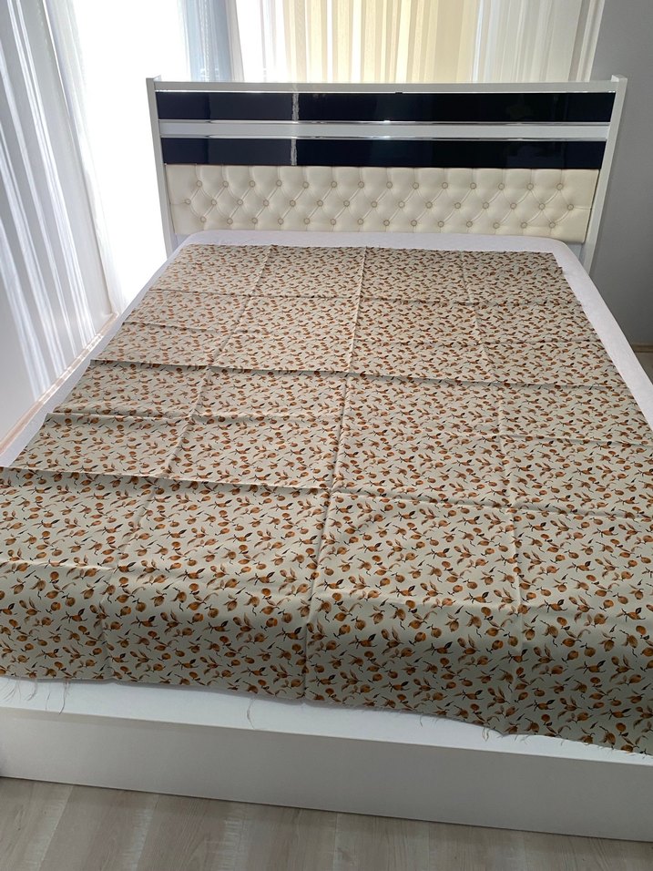 Yumuşak dokulu, açık kahverengi baskılı kumaş boy:197 cm genişlik:140 cm