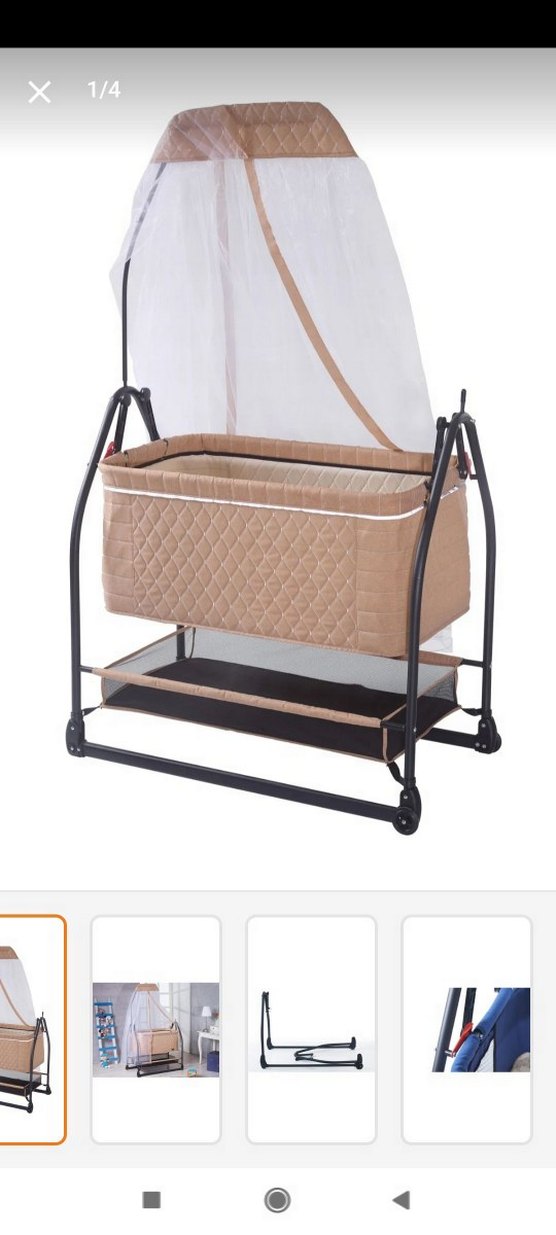 Açık kahverengi kapitone kumaşlı bebek beşiği ve sepeti, siyah metal çerçeveli. Tül cibinlik ve alt kısmında saklama rafı bulunur. ️ölçüleri büyük olandır bir ay kadar kullanıldı bebeğim beşik istemedi yepyeni duruyor