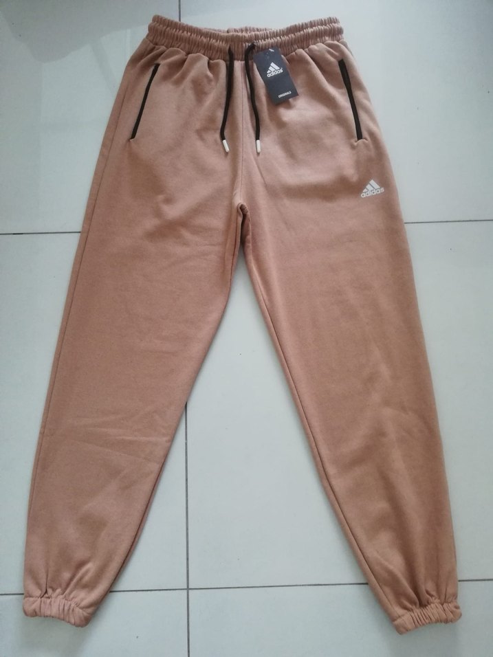 Yumuşak kumaştan, fermuarlı cepleri ve lastikli bilekleri olan bol kesim açık kahverengi sweatpant. Dış mekan için uygun sokak stili. İçi hafif şardonludur.