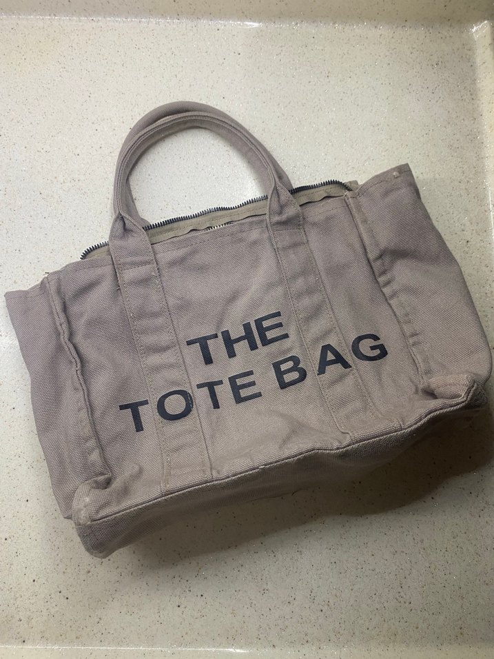 Açık kahverengi gri renkte baskılı ve fermuarlı kadın tekstil omuz çantası, günlük sokak stili için uygundur. Deliği deşiği yok, düzgün ve özenli kullanıldı. Askısı yoktur.