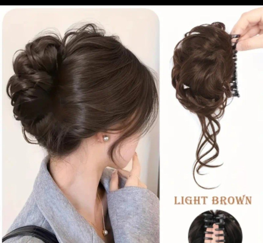 Açık Kahverengi Örgü Puff Topuz Tokası