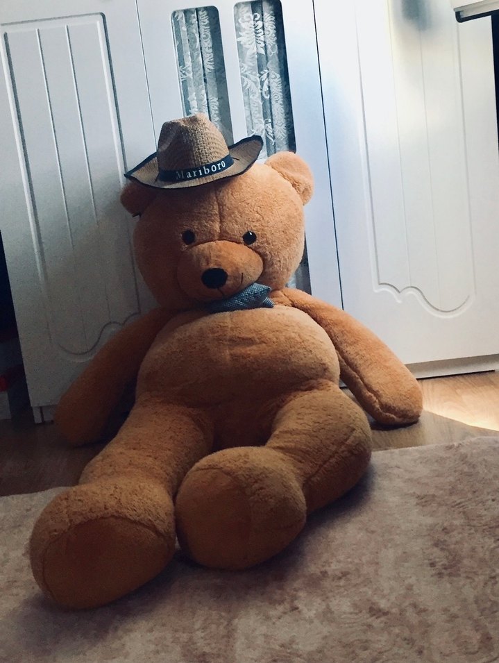 Açık kahverengi peluş ayı oyuncak, Rahatlatıcı bir arkadaş olabilir. 160 cm boyunda papyonu mevcuttur.