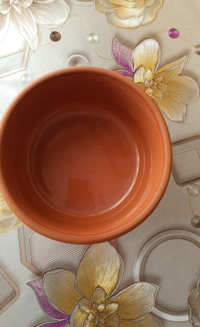 Pürüzsüz iç yüzeye sahip açık kahverengi seramik yiyecek kabı, çeşitli yiyeceklerin saklanması için uygundur.en 16 cm derinlik 8cm.