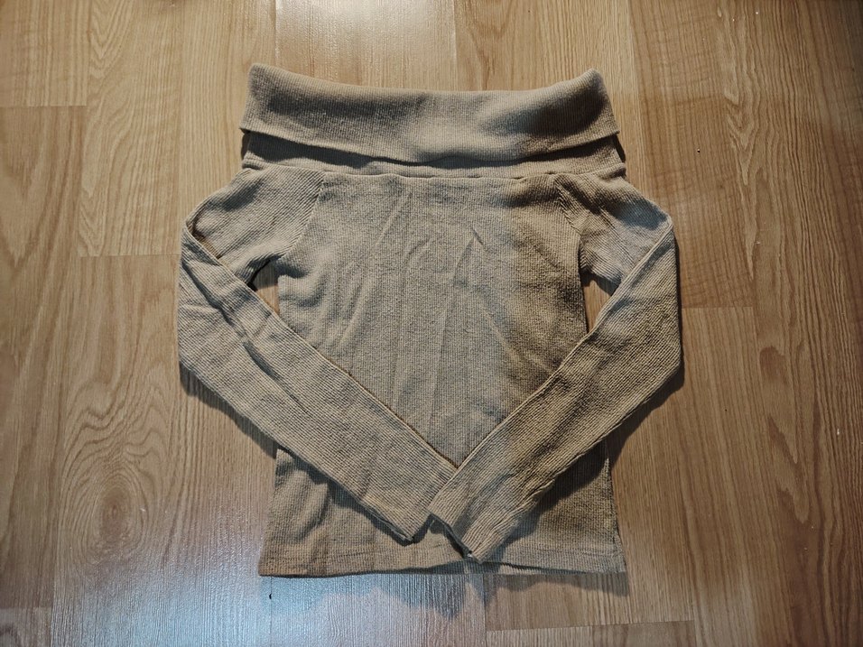Açık kahve renkli, ince triko kumaştan, uzun kollu ve kayık yaka, vücuda oturan kadın bluzu. Rahat ve günlük kullanıma uygun.