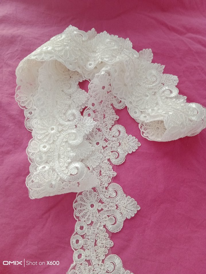 Beyaz renkli, çiçek desenli bohem tarzda işlenmiş ince dantel şerit. El işi detaylarıyla zarif bir görünüm sunar.