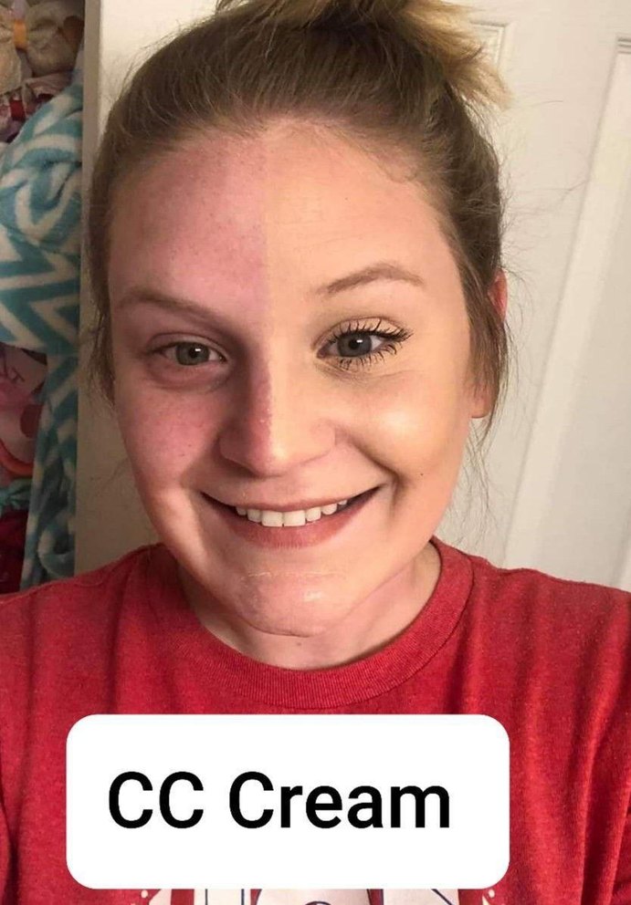 Açık kırmızı tonunda CC krem, cilt tonunu eşitler ve doğal kapatıcılık sağlar.