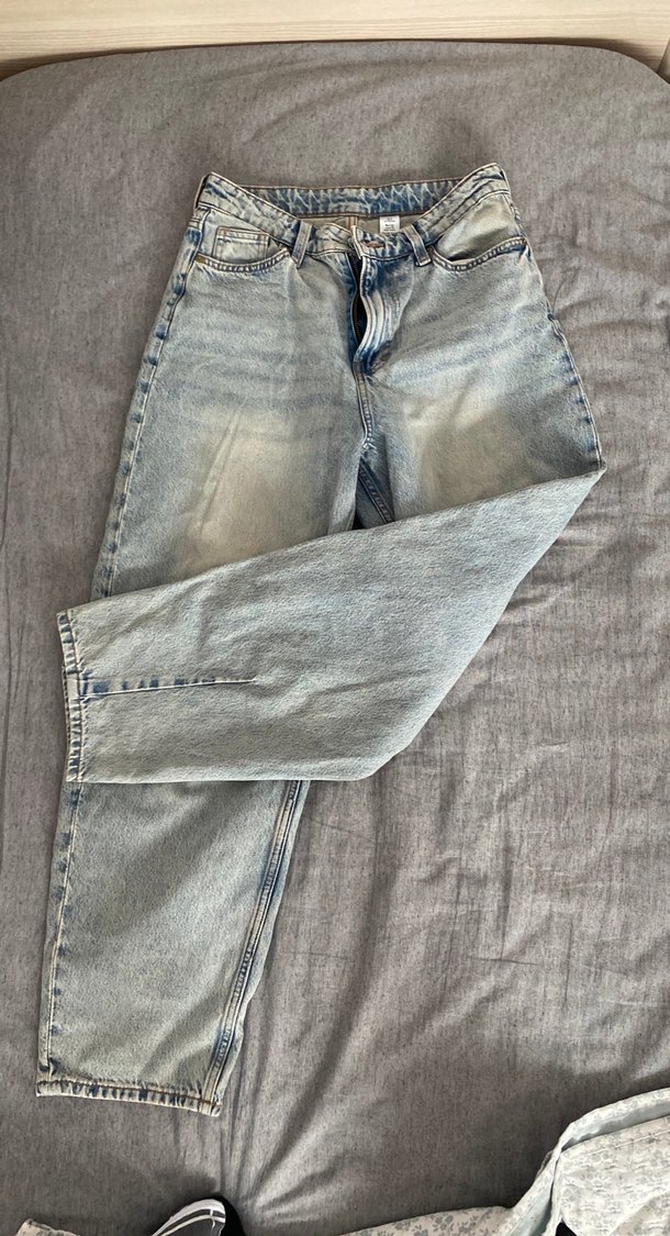 açık mavi renkli, rahat kesim, baggy denim kot pantolon. Sade tasarımıyla gündelik kullanıma uygun, zahmetsiz şıklık sunar.