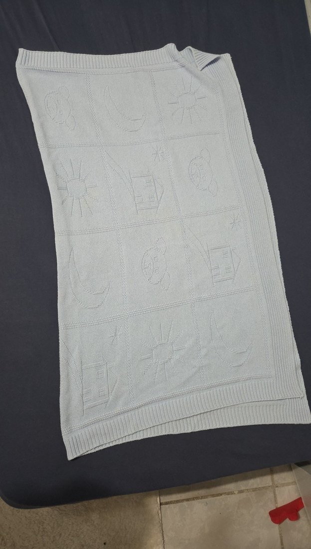 95x105 cm mavi renkli bebek pikesi güneş, ev, ay ve ayıcık desenleriyle yumuşak ve rahat bir dokunuş sunar.