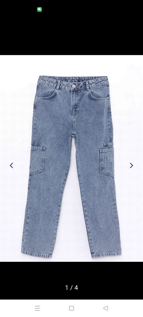 buz mavi renkli, bol kesim ve düğmeli detaylara sahip normal boy midi uzunluğunda denim kadın pantolon. Sade desensiz tasarımı ve kullanışlı arka cepleri bulunur.