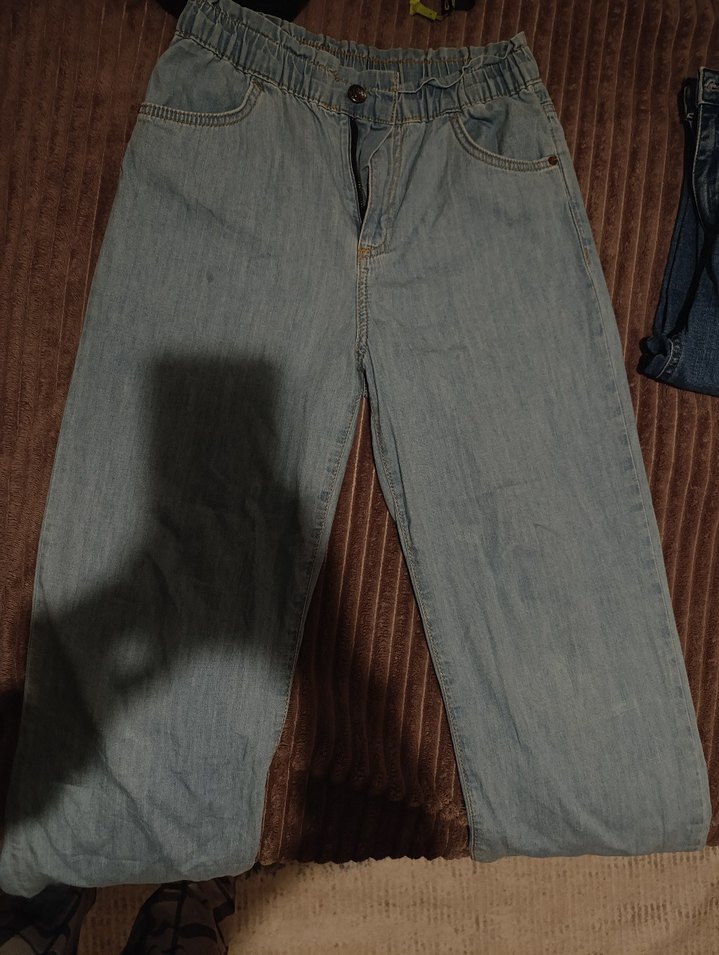 açık mavi renkli, bol kesim midi uzunlukta, düğmeli kot pantolon, günlük rahat kullanım için uygundur. ️ yazlık ince ürün