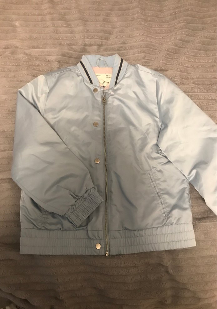 Mavi renkli, düğmeli ve uzun kollu kız ceketi, midi boy ve rahat kesimdedir. Sade ve sentetik kumaştan, günlük sokak stiline uygundur.