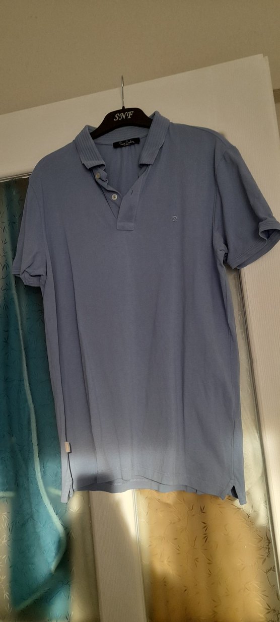 açık mavi, denim kumaştan yapılmış, yakalı ve düğmeli kısa kollu erkek polo tişört. Rahat kesimiyle günlük sokak stiline uygundur.