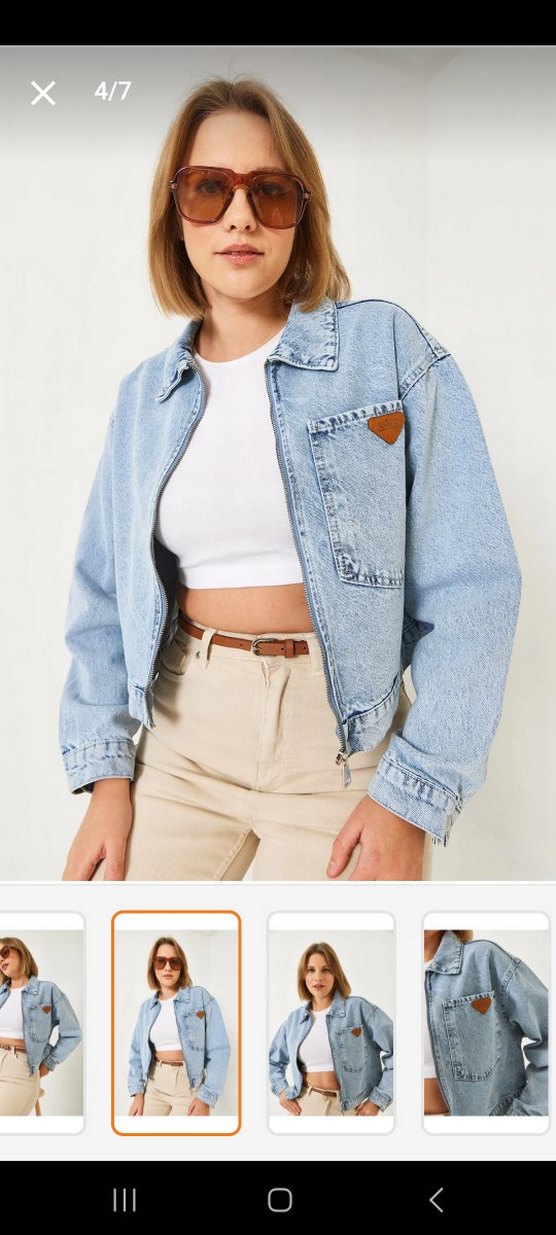 Açık mavi renkte, geniş kesim ve uzun kollu denim ceket. Notlu yaka ve düğmeli kapama detaylarıyla günlük sokak tarzına uygun.