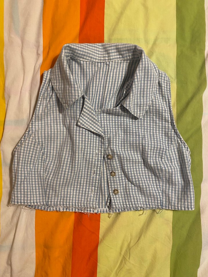 açık mavi ekoseli kısa üst